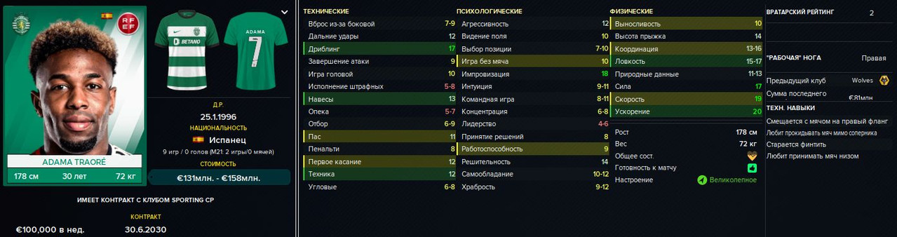 31(8) игра, 2600 минут, 9+10 (3.71 xG, 7.84 xA), 1.45 прх/90, 2.08 отб/90, 0.73 обв/90, оценка 7.31.