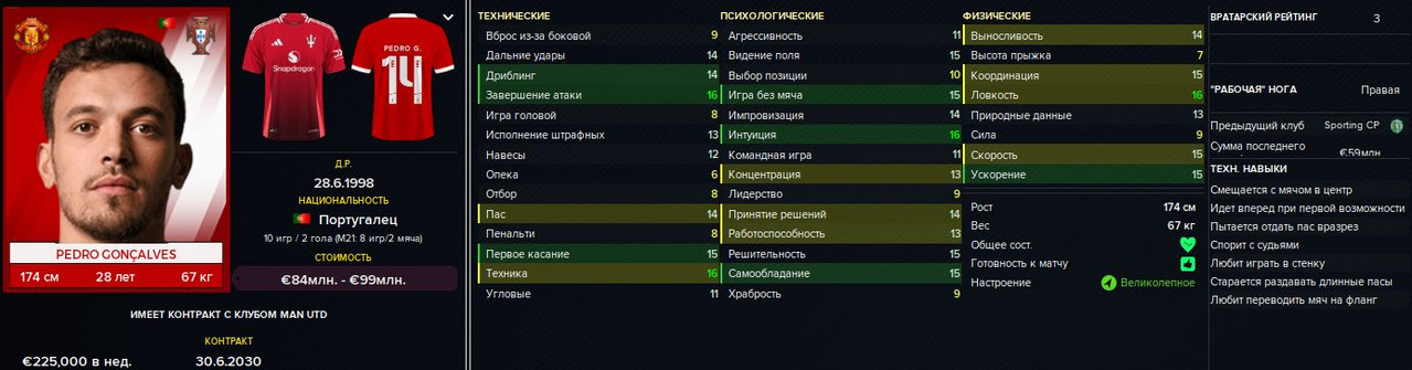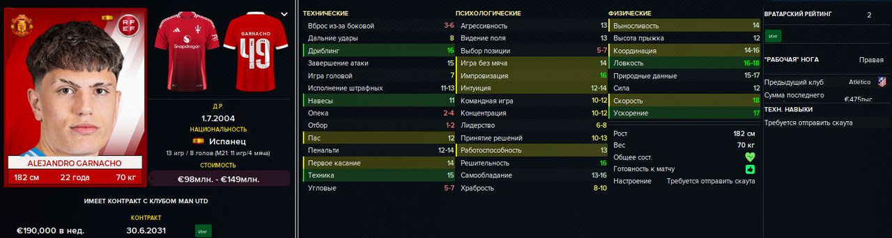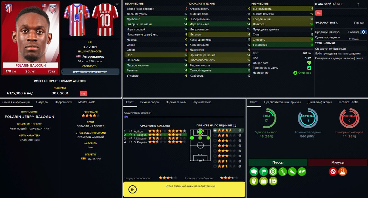 13(7) игр, 1118 минут, 3+6 (4.01 xG, 3.73 xА), оценка 7.16.