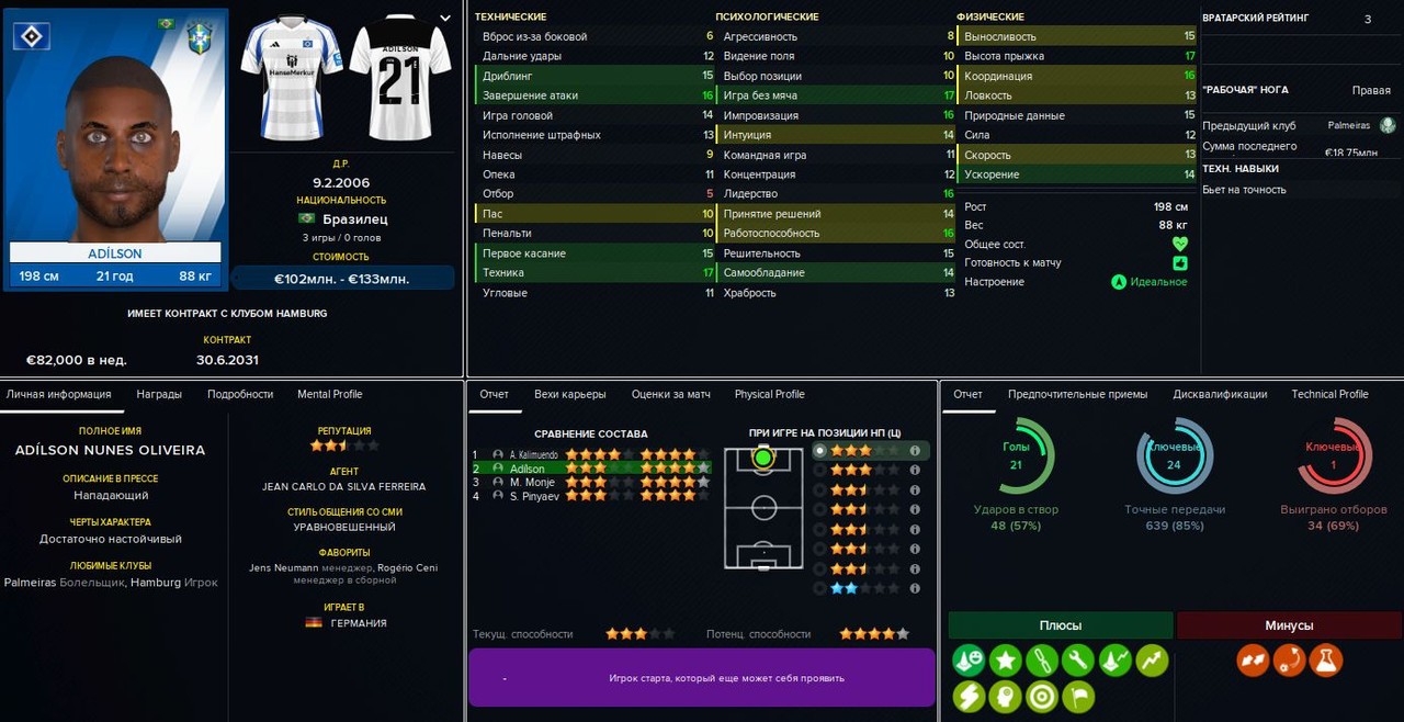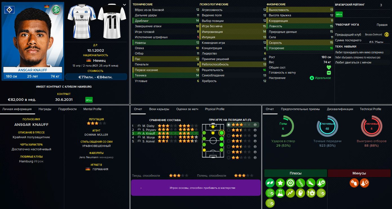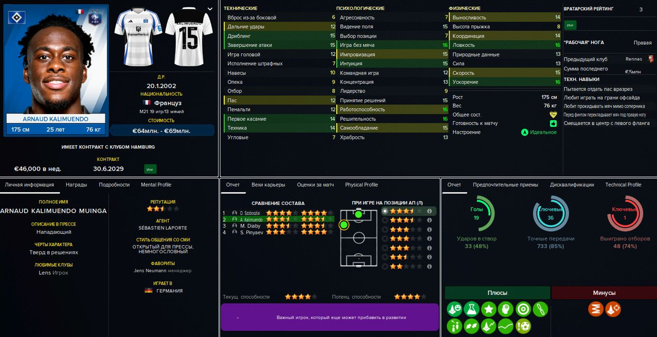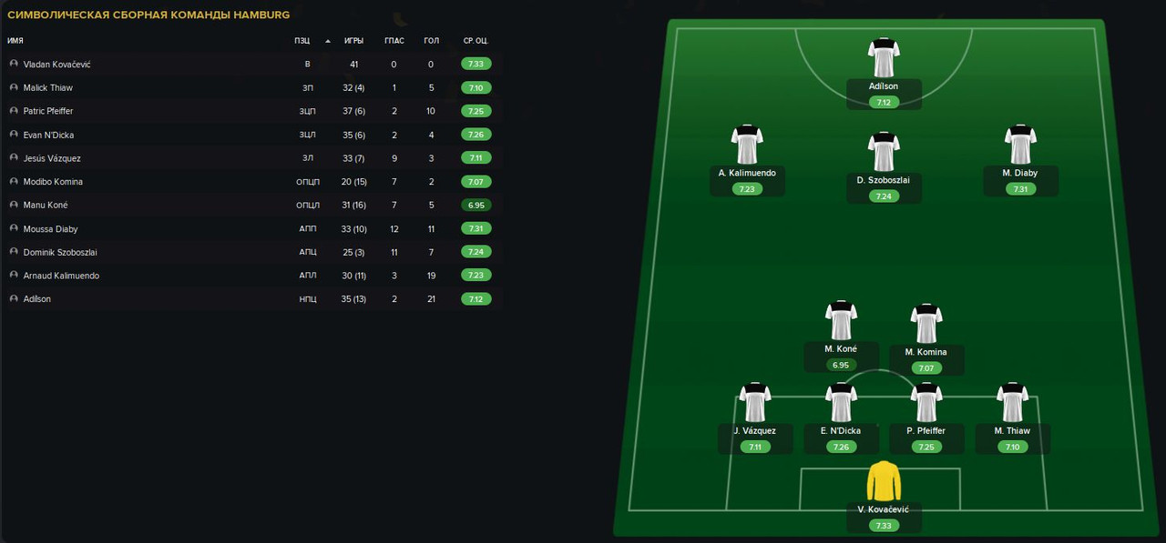 Большая часть ассистов — со стандартов, но даже полтора десятка результативных действий еле-еле дотянули оценку Ангело до семёрки. Учитывая серьёзную конкуренцию на его позиции и то, что Ангело уже упёрся в потолок развития... В общем, ещё зимой я принял предложение «Лейпцига» (51 млн евро), договорившись, что полузащитник доиграет сезон в «Гамбурге».