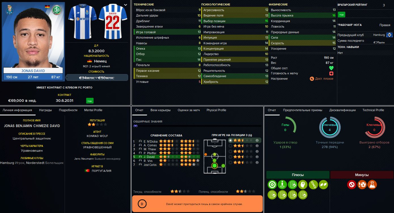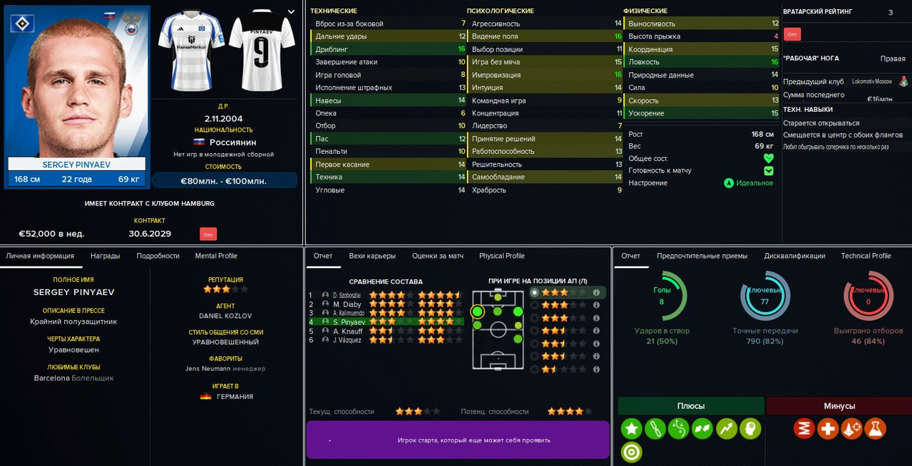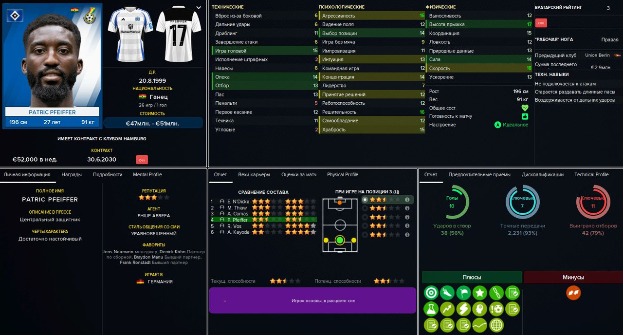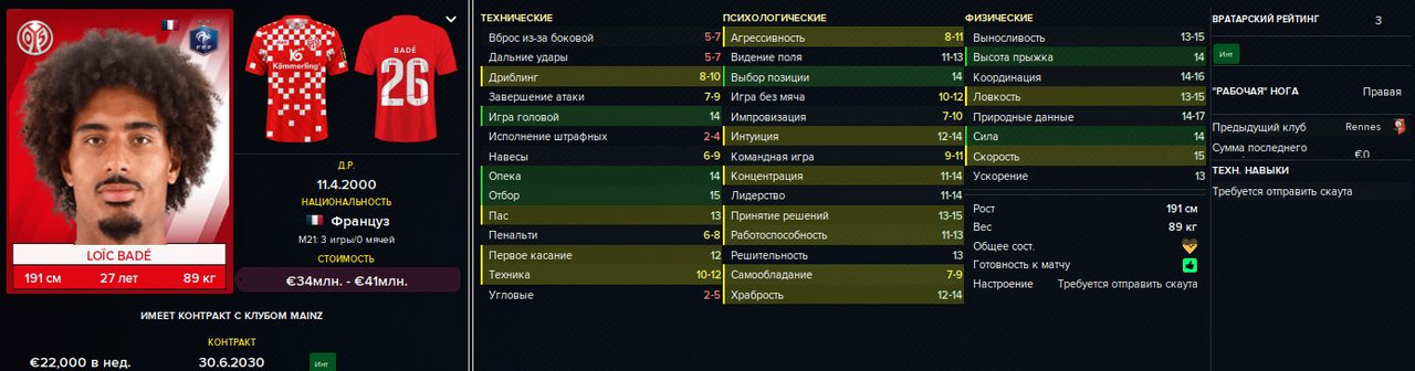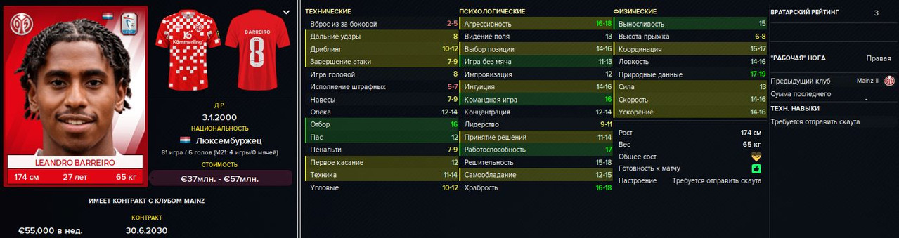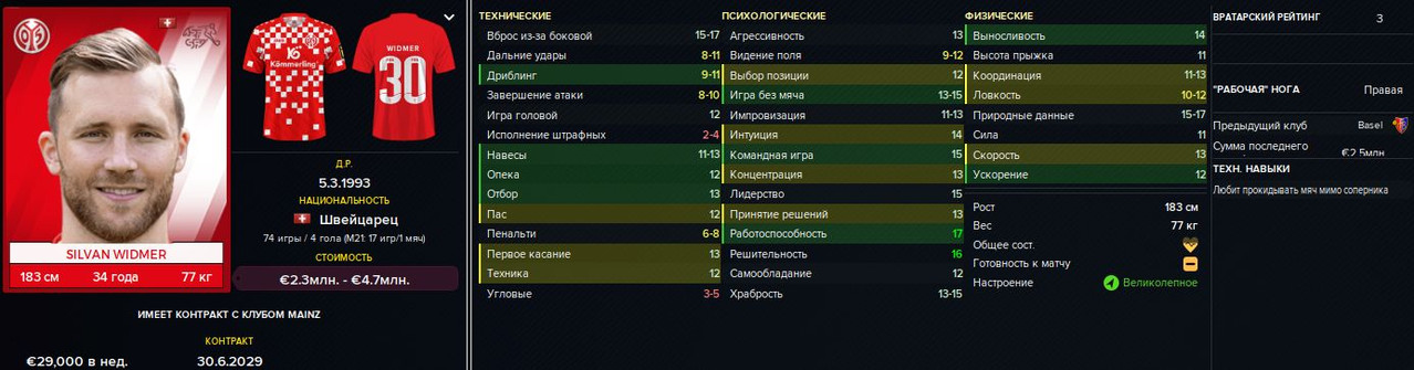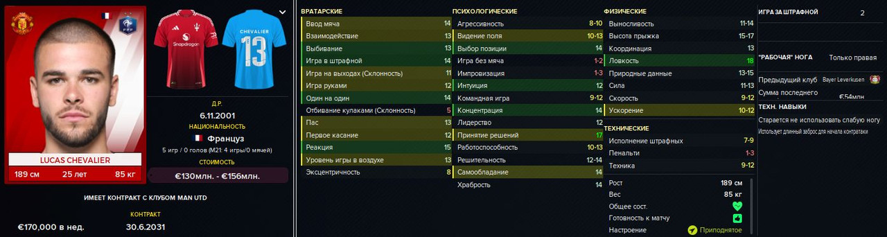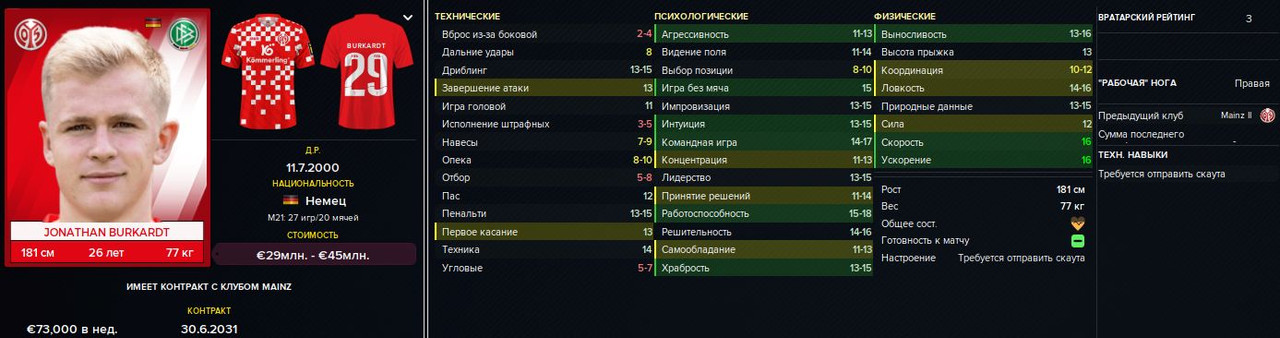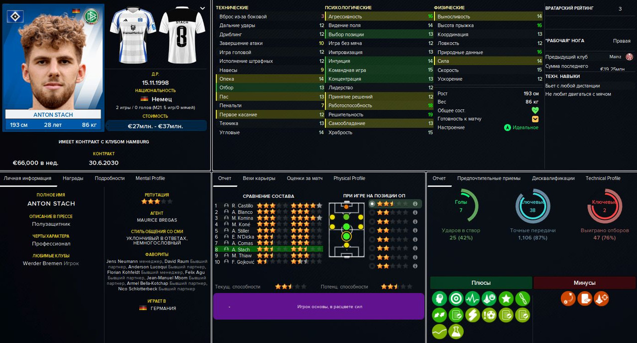 Уроженец Хольштедт-Рейна (не нашёл, где это). Характер у парня неплохой, реакция тоже, да и по основным вратарским скиллам критичных просадок нет. Но вот нестабильность для голкипера — это прямо-таки целая поварёшка дёгтя.