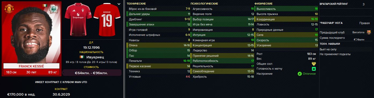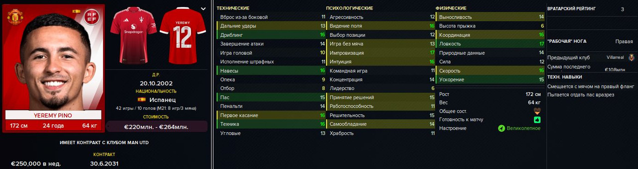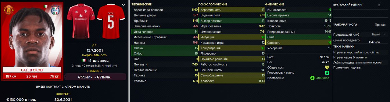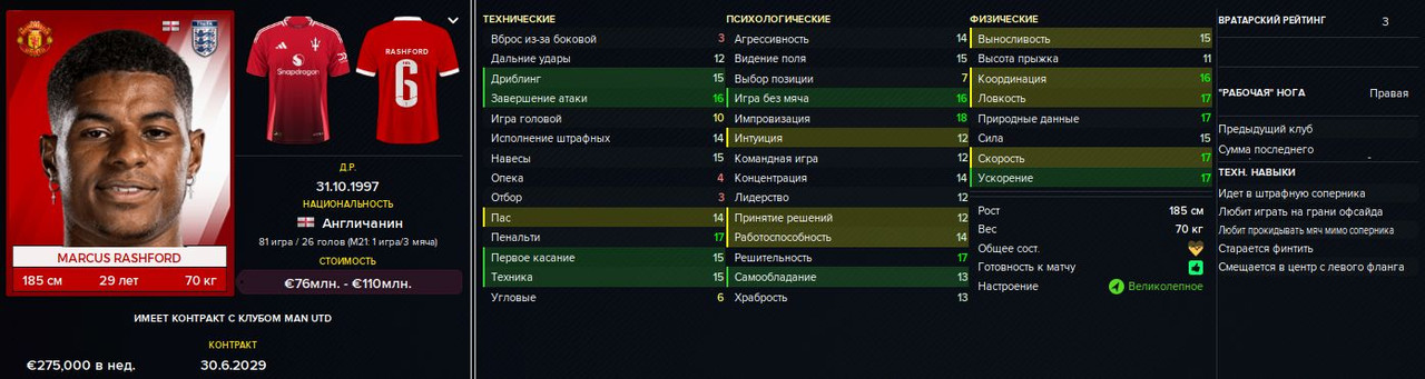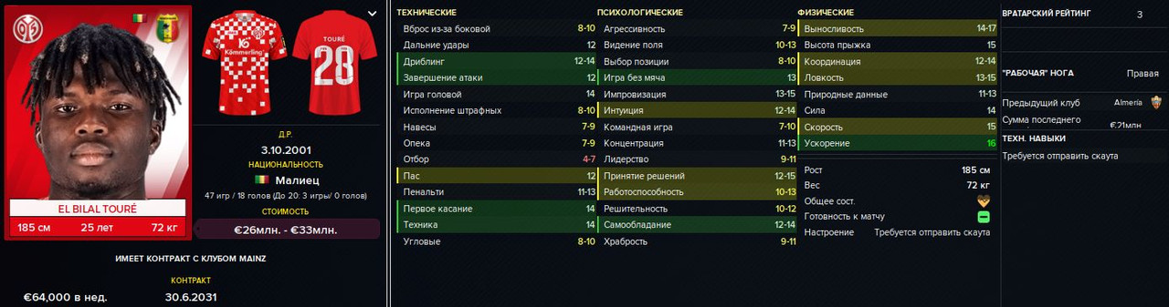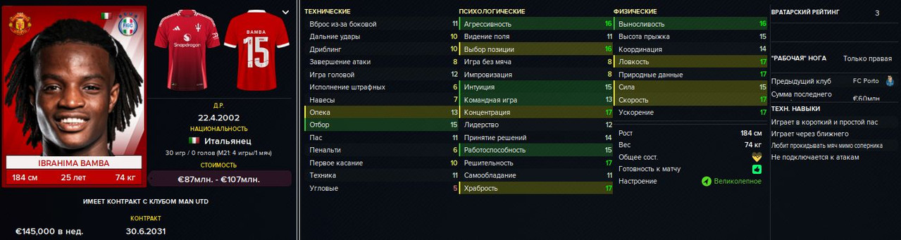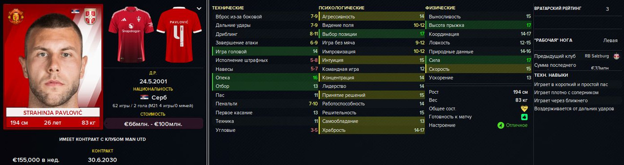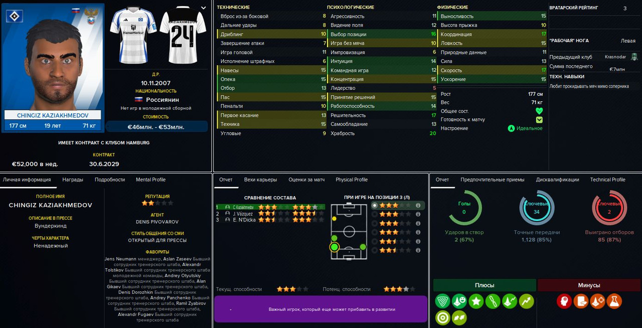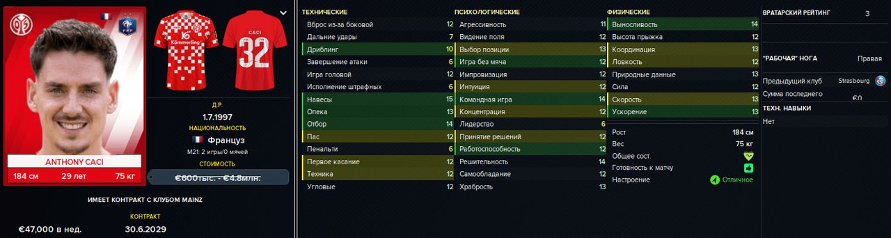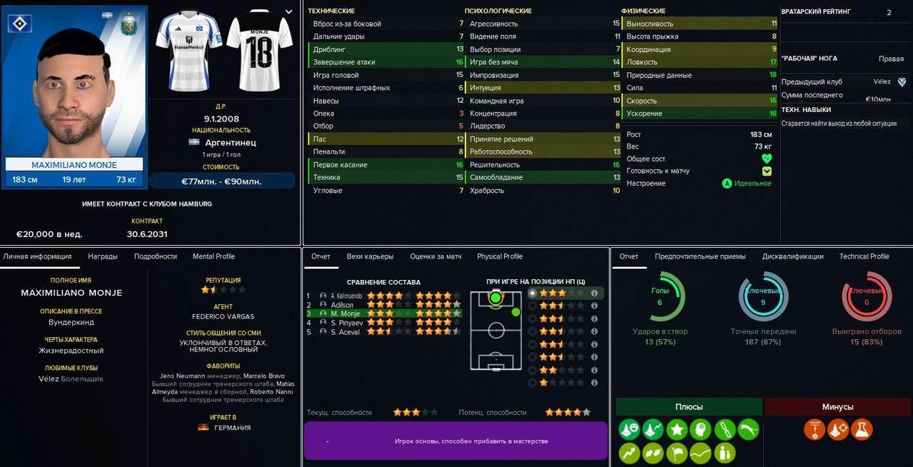 Уроженец Хольштедт-Рейна (не нашёл, где это). Характер у парня неплохой, реакция тоже, да и по основным вратарским скиллам критичных просадок нет. Но вот нестабильность для голкипера — это прямо-таки целая поварёшка дёгтя.