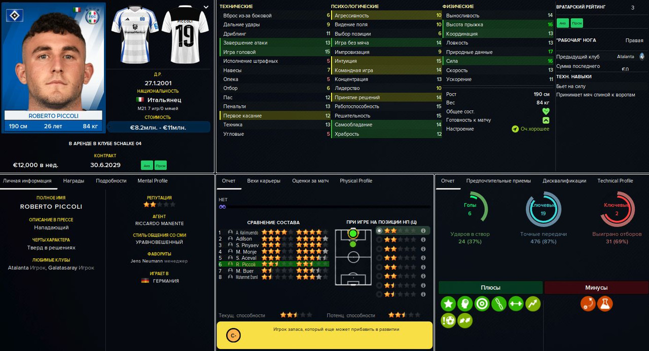 Роберто ПИККОЛИ («Шальке»), 19(11) игры, 1827 минут, 6+2 (9.12 xG, 2.04 xA), 8.57 вздх/90 (53% выиграно), 1.03 обв/90, оценка 6.84. Судьба (в виде проблем со здоровьем у конкурента) подарила Роберто возможность проявить себя во всей красе в удачно выступившей команде, но он этим не воспользовался.