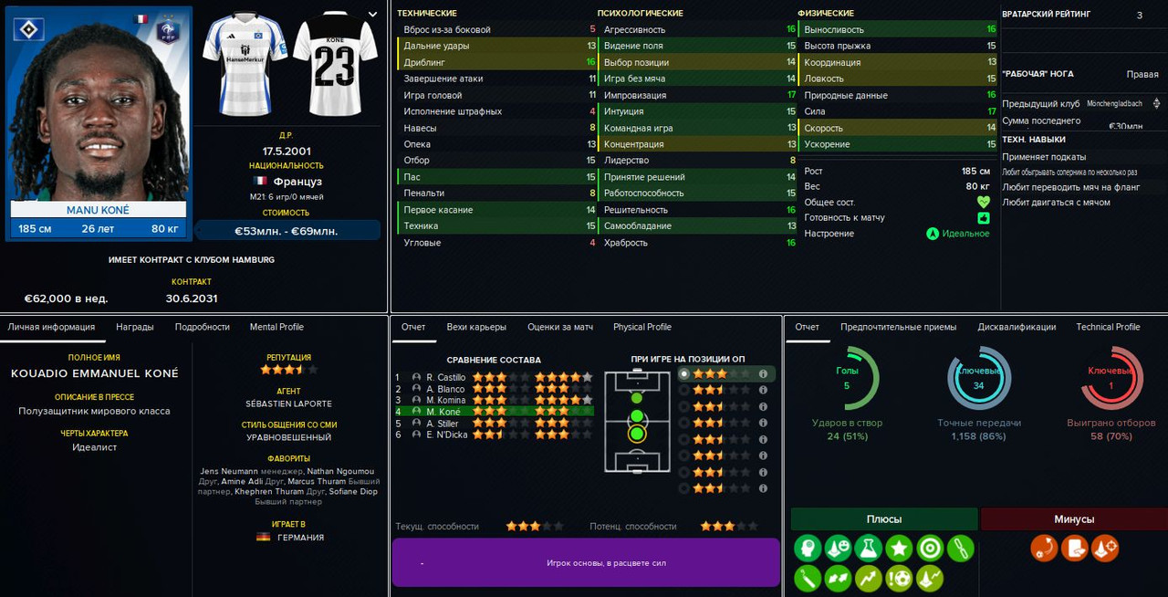 Полурослик из Шира (ладно-ладно, он из Гамбурга) и мой личный фанат. Серьёзно, пацан болеет за меня и не болеет за родной клуб. Ну как такого не подписать?! По-царски по-кайзеровски лупит издали, в меру техничен, команден, решителен. Последнее, кстати, надеюсь, хоть как-то компенсирует его неамбициозный характер.