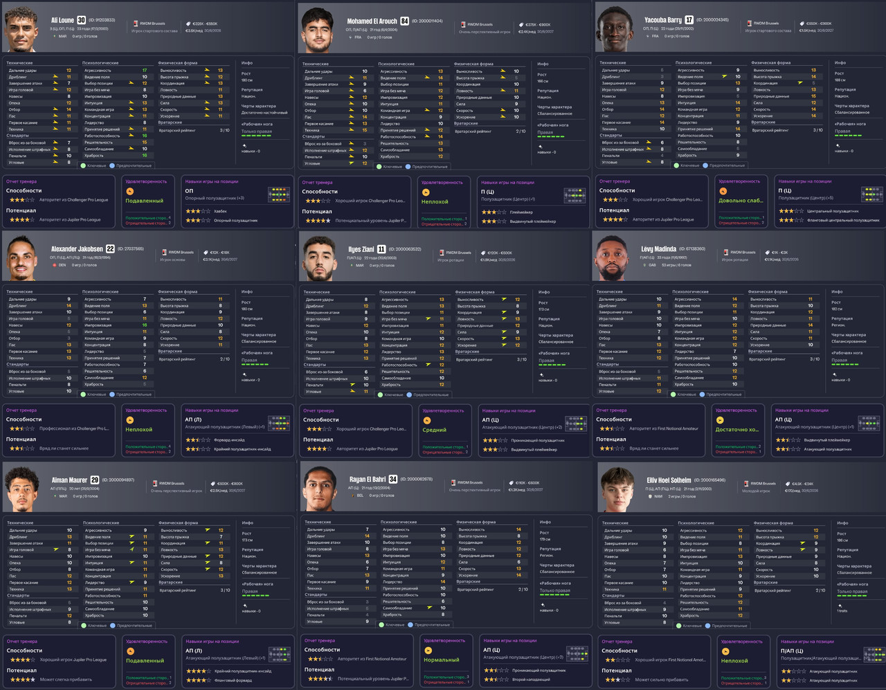 Заяд Эль Кандусси - 23 года, Бельгия \ Марокко. Бесплатный трансфер, последним клубом был Кроссинг. При этом он является воспитанником моего клуба! Очень крутой трансфер и надежда на светлое будущее. Универсален и обладает хорошими скиллами (за исключением выносливости). Будет ключевой фигурой в атаке! Когда-то в молодежке Аделакуне и Заяд играли вместе, были друзьями, но сейчас они на разных ступенях. Тем не менее, дружба и взаимопомощь очень вероятны.