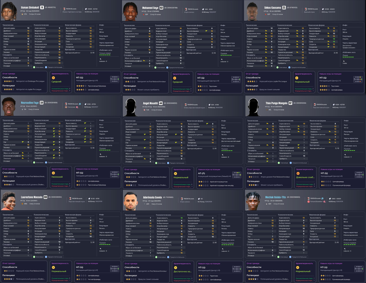 - 23 года, ЦАР \ Франция. Был в команде на момент начала игры. Отличный футболист для разнообразия игры, но без сильных сторон, к сожалению. Будет запасным форвардом.