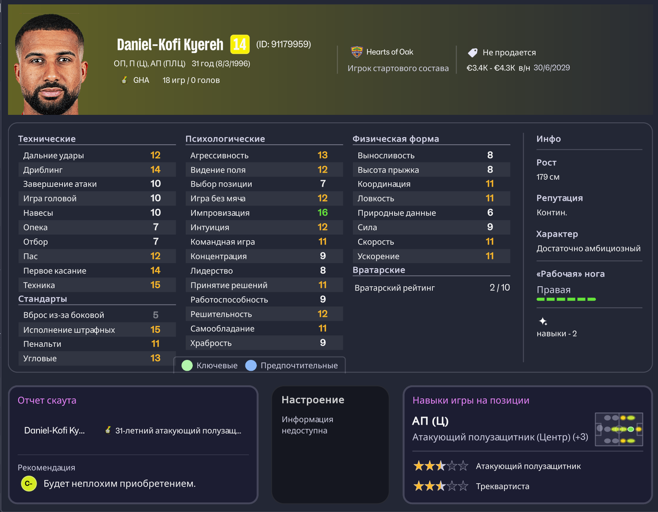 - Дэниел-Кофи Кьере перешел в "Хартс оф Оак" за 37 тысяч. Ситуация примерно такая же, как с Шикауи. Думал, что он будет тащить, но в итоге не смог выиграть конкуренцию.