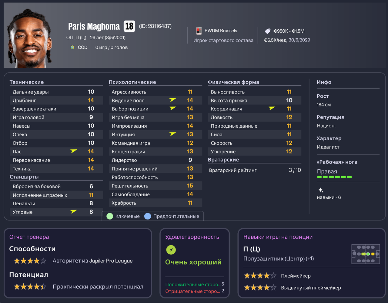 - Парис Магома, 25 лел, Конго ДР  Англия. Шикарный плеймейкер. Думаю, что у него не получилось заиграть в АПЛ из-за своих физических данных, но для меня это лидер полузащиты. Психология очень ровная, техника шикарная. Будет играть в центре поля вместе с Дасилвой. Еще бы сильного опорника под ними и вообще было бы топ. Не удивлюсь, если через год придет клуб из АПЛ. Бесплатный трансфер. Последним клубом был Брентфорд.