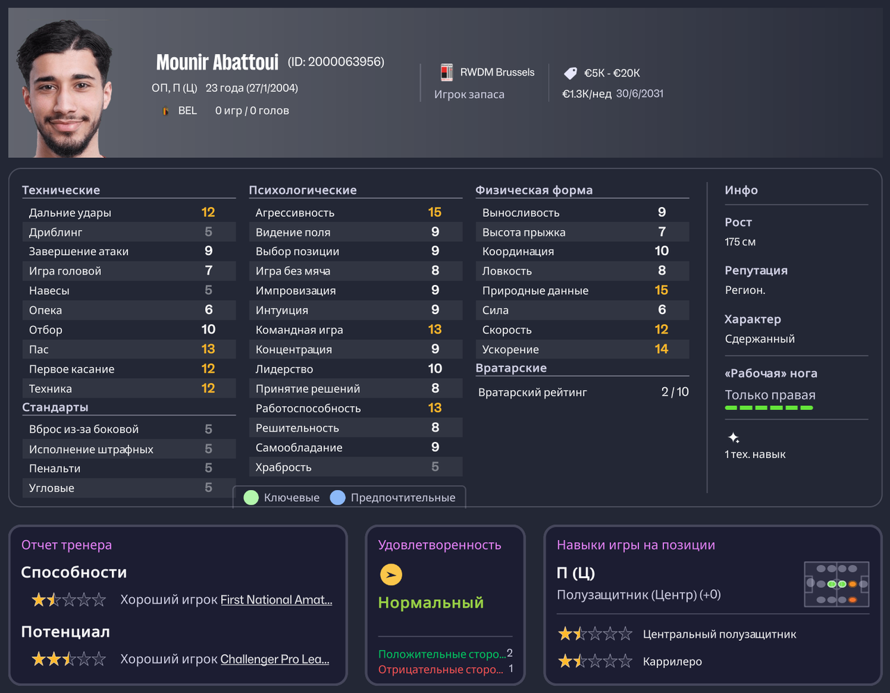 - Мунир Аббатуи, 23 года, Бельгия  Марокко. Слабый полузащитник, но является воспитанником клуба. А свои воспитанники очень нужны при регистрации в ЕК. Бесплатный трансфер. Последним клубом была Спарта Петегем.