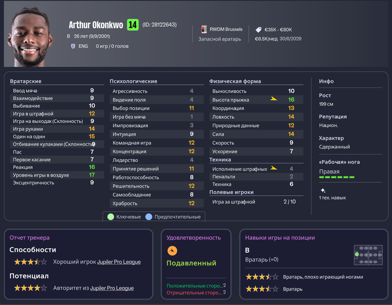 - Артур Оконкво, 26 лет, Англия  Нигерия. Изначально рассчитывал именно на него, а потом появился вариант с Окойе. На данный момент - кубковый вратарь, но зато у нас будет хороший сменщик, если вдруг Окойе уйдет. Классический вратарь, который "плохо играет ногами" и "топ на ленточке". Бесплатный трансфер. Последним клубом был Рэксем.