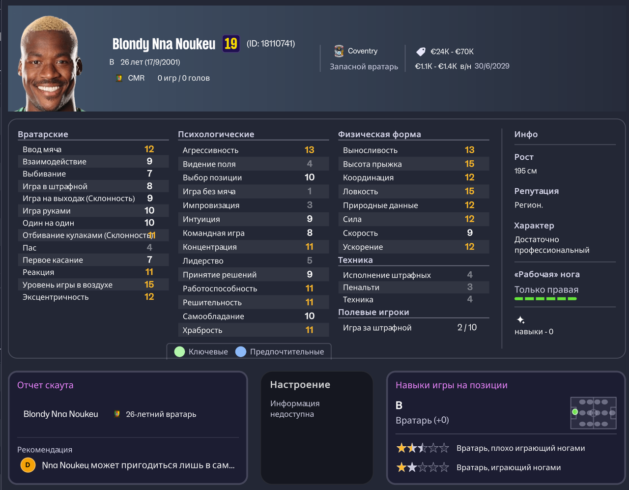 - Блонди Нна Нуки перешел в Ковентри за 18 тысяч. Был нашим третьим вратарем, теперь будет таким же в другой команде. Пришёл к мнению, что третьим вратарем должен быть либо игрок с интересным сочетанием гражданств, либо свой воспитанник(или хотя бы страны)