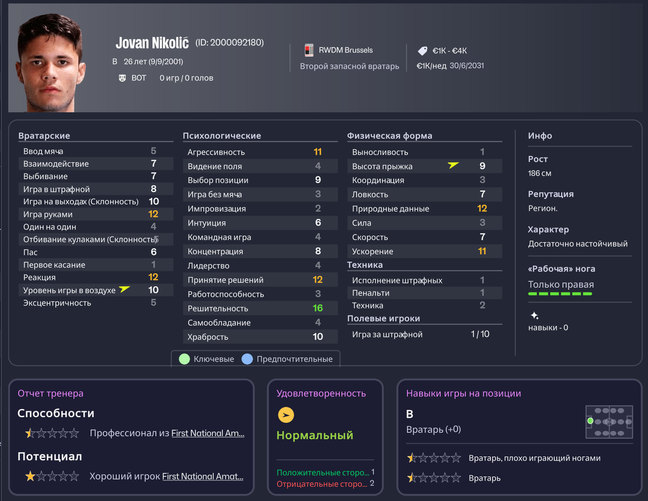 - Йован Николич, 26 лет, Ботсвана  Сербия  Португалия. Удивительный человек. Родился в Габороне (столица Ботсваны), играл в Португалии и Сербии. Представляю, что его родители какие-то политики, поэтому он там и родился. Играл в реальности за молодежку Ботсваны, в сейве уже дебютировал за основную сборную. Очевидно, что играть он не будет. Он четвертый вратарь. Взят за уникальное сочетание гражданств. Бесплатный трансфер. Последним клубом был Валенчаш.