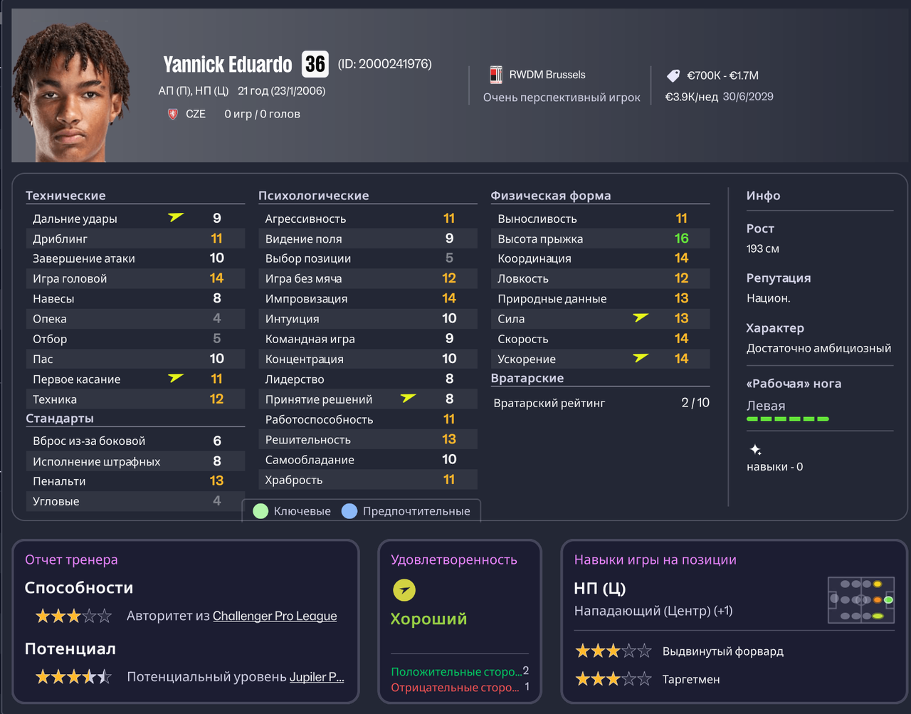 - Янник Эдуардо, 21 год, Чехия  Ангола  Голландия. Тот самый Кабамбообразный футболист. Рассматриваю его игроком ротации, пока что у Сонко и Кабамбы огромный кредит доверия. Чистая физика и ничего лишнего. Бесплатный трансфер. Последним клубом был Лейпциг.