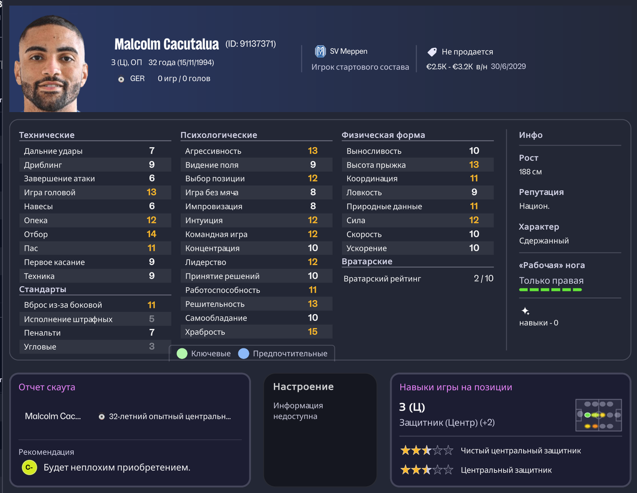- Малком Какаталуа перешел в "Меппен" за 20 тысяч. Более старая и менее сильная версия Али Луна. Увы, потерял всякие шансы на игру даже в ротации.