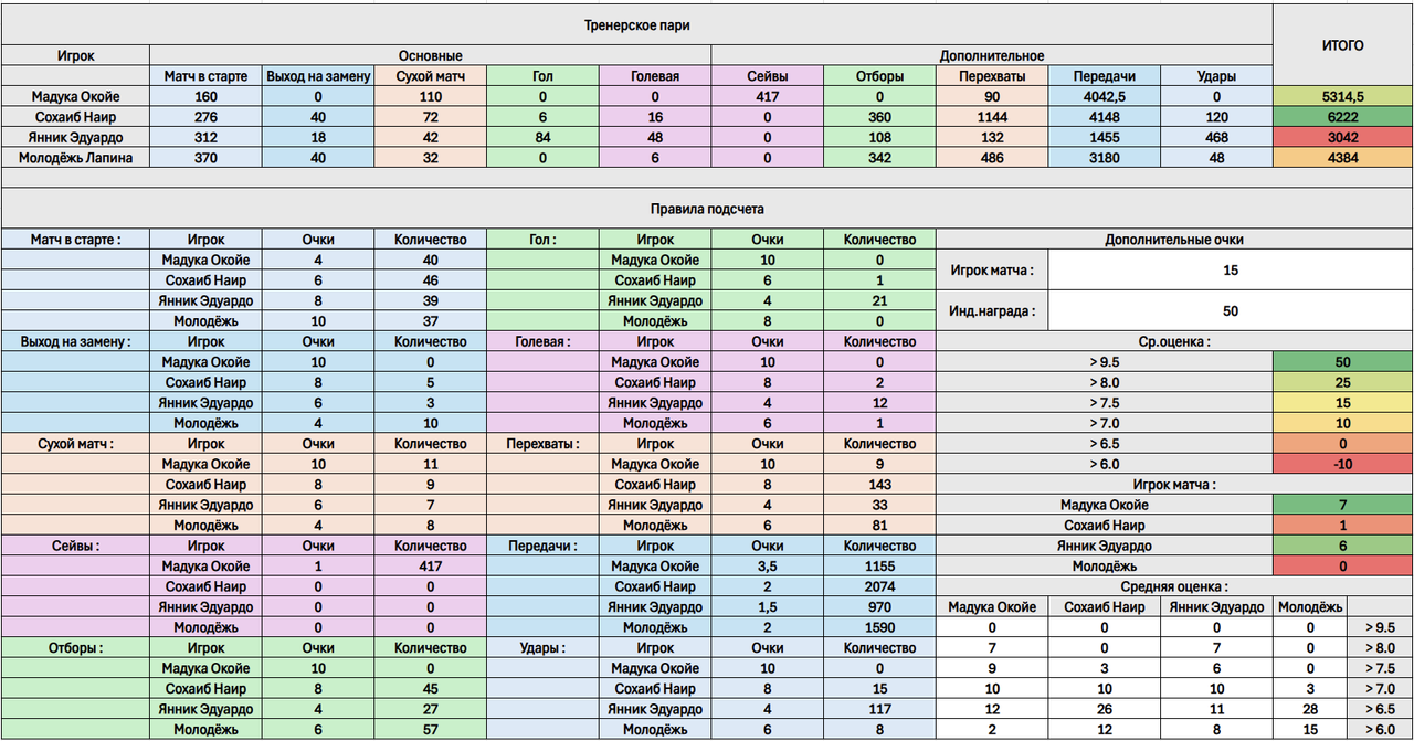 Игроки индивидуально провели сезон неплохо, но в чемпионате команда сыграла не очень хорошо. По ходу сезона мы испытывали проблемы с составом, несмотря на количество игроков. Временами футболисты травмировались по несколько человек на одну позицию, и я не особо представлял, как мне себя вести в таких ситуациях. Плюс снова метался от схемы к схеме, есть представление примерное, как я хочу играть, но игра некоторых футболистов не дает полностью измениться, например, то Кабамба всех выносит, то Янник вытаскивал матчи.
