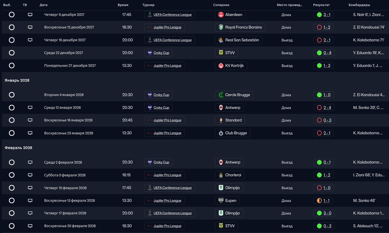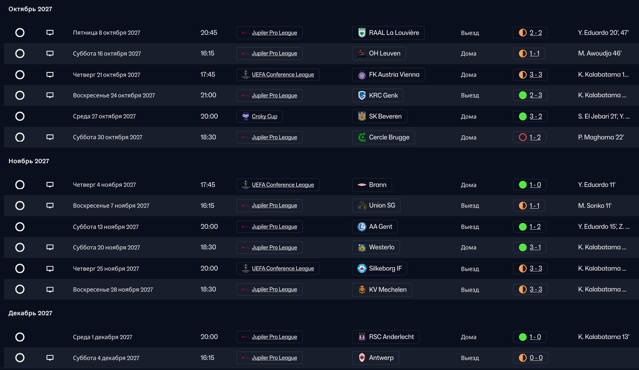 Видимо, после этого матча мы исчерпали все свои очки везения или что-то вроде того. В слоте между матчами с Легией мы проиграли Ла Луврье, далее проиграли Леувену(к 31-й минуте уже летели 3-0), затем безвольно дома проиграли Генку.