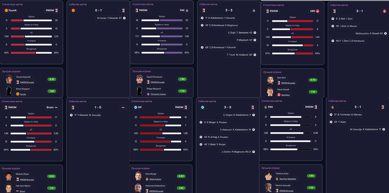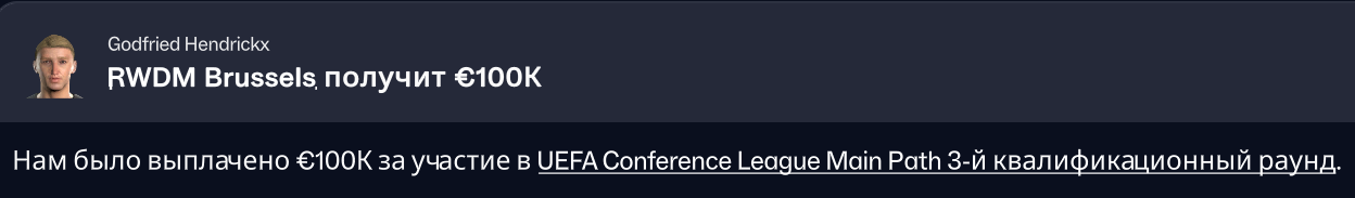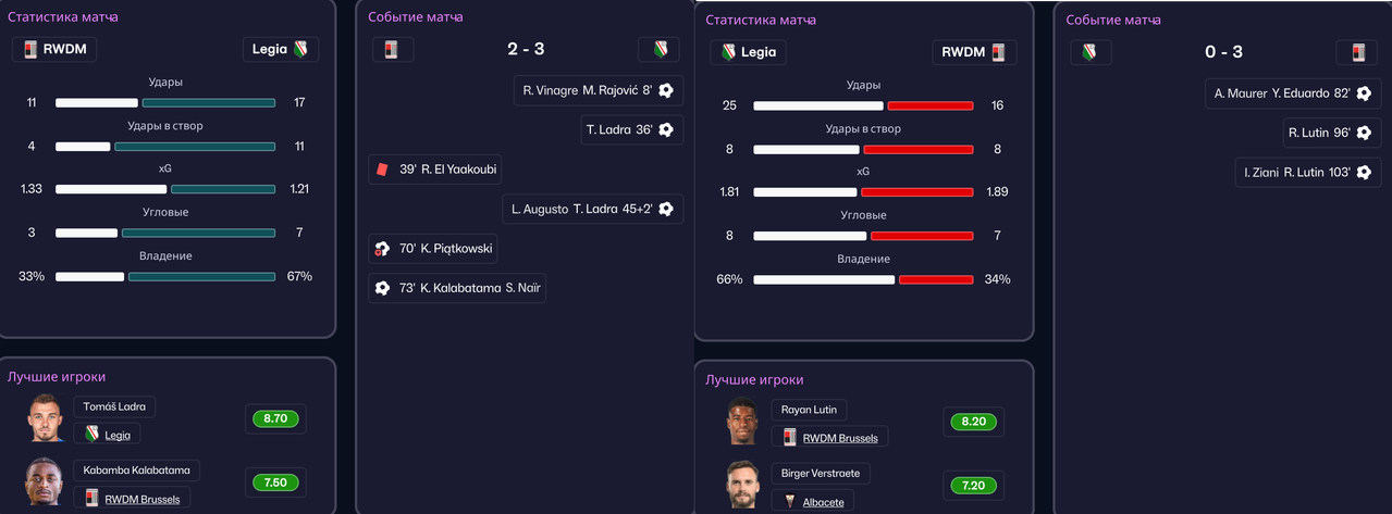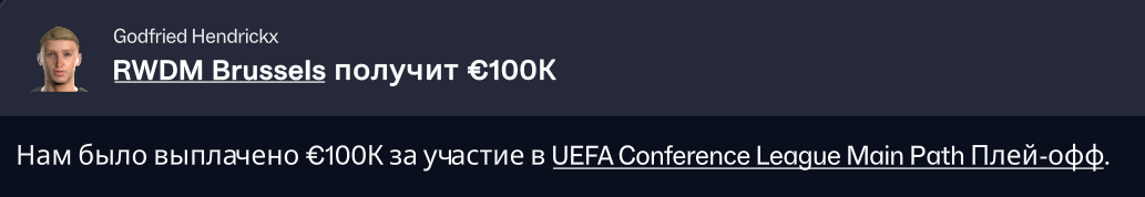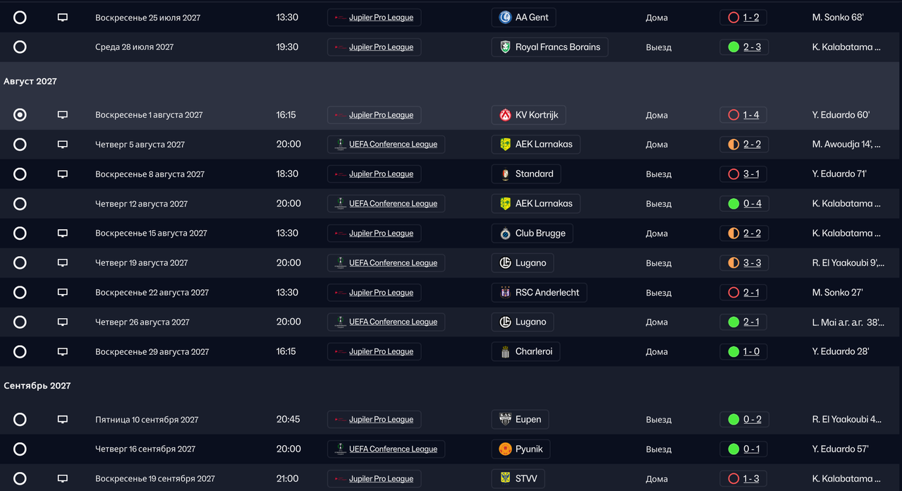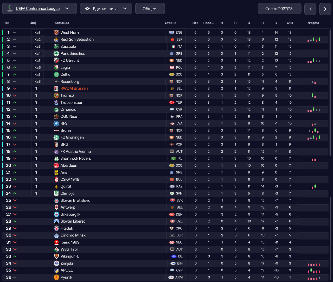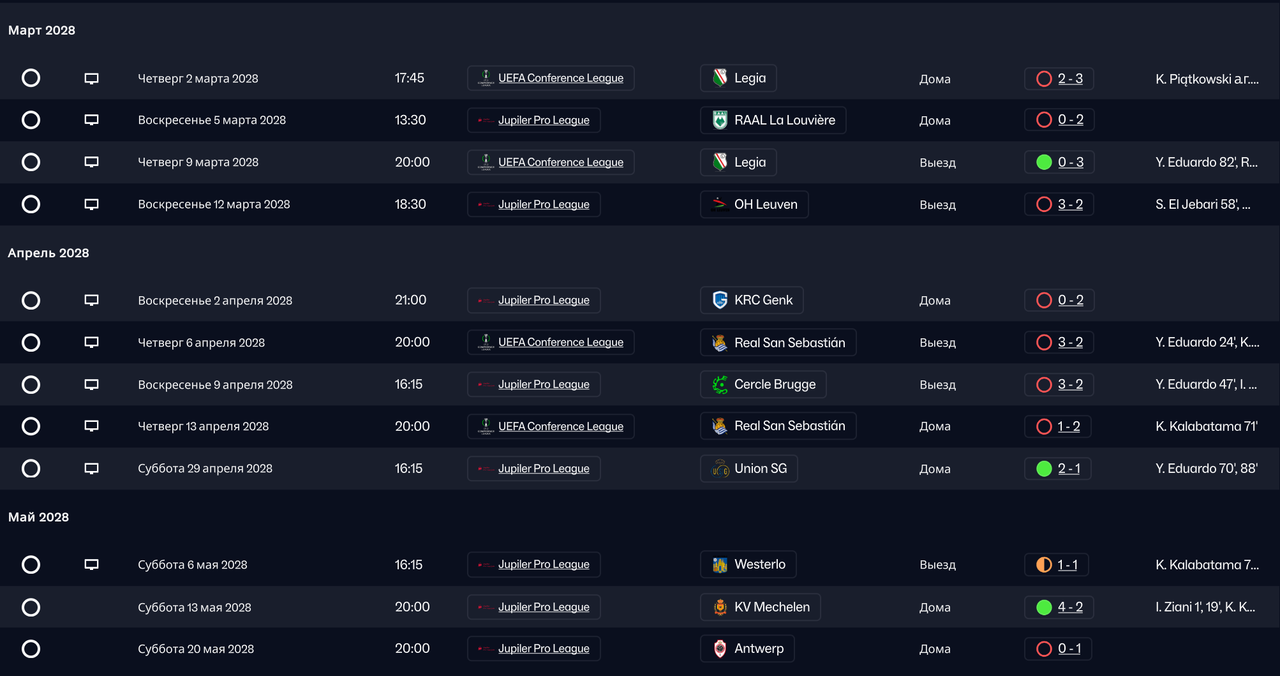 Первые три матча в лиге оказались подготовительными к 3-му раунду квалификации Лиги Конференций. Увы, в новой версии игры нельзя в расписании выключить или включить отображение разных турниров.