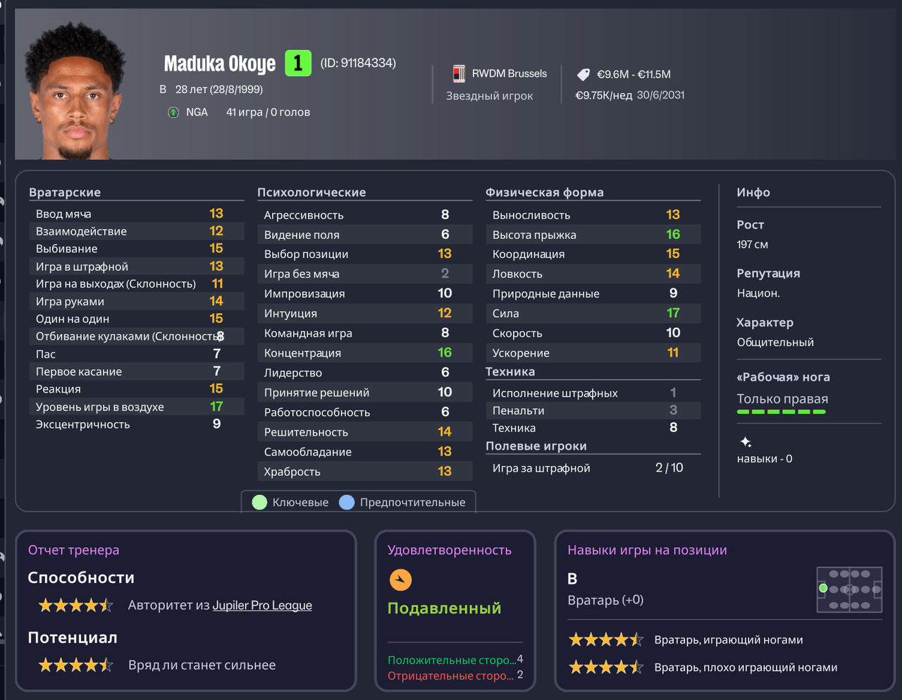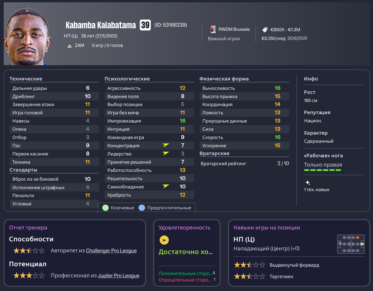 Цитата: Волира от 29 ноября 2025, 17:21:29- Йован Николич, 26 лет, Ботсвана  Сербия  Португалия. Удивительный человек. Родился в Габороне (столица Ботсваны), играл в Португалии и Сербии. Представляю, что его родители какие-то политики, поэтому он там и родился. Играл в реальности за молодежку Ботсваны, в сейве уже дебютировал за основную сборную. Очевидно, что играть он не будет. Он четвертый вратарь. Взят за уникальное сочетание гражданств. Бесплатный трансфер. Последним клубом был Валенчаш.