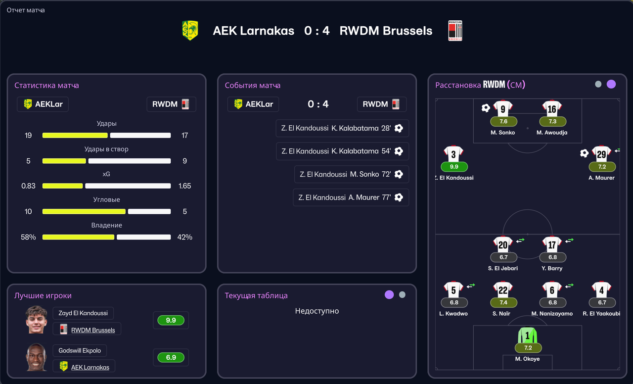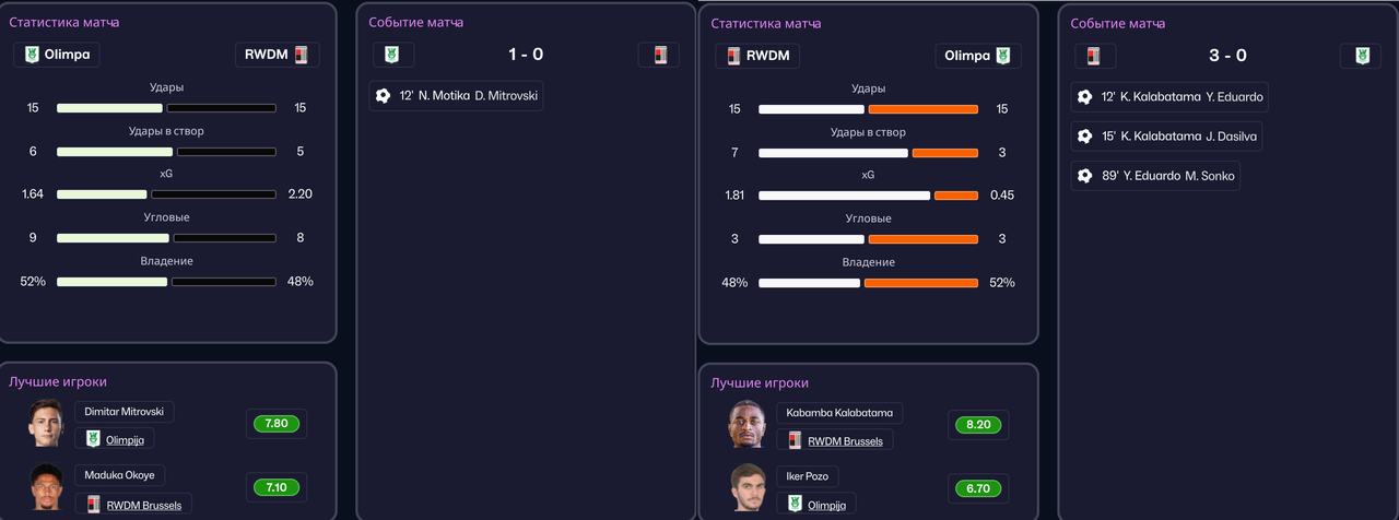 Было довольно неожиданно видеть такие результаты, что-то типо реальной Балтики(только жаль, что в реальности у них нет такого бомбардира)