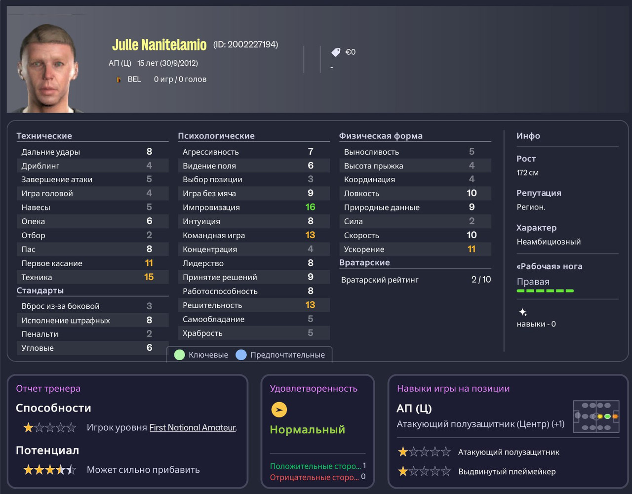 Жюль Нанителамио - самый перспективный из этого набора. Но на данный момент он крайне сырой. Слабое видение поля, не очень хороший пас, отсутствие дриблинга. Как атакующий полузащитник Жюль плох. Возможно, он сможет заиграть в центре поля в роли плеймейкера, но крайне сомневаюсь.