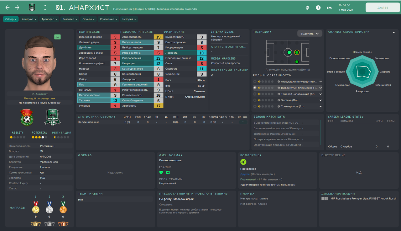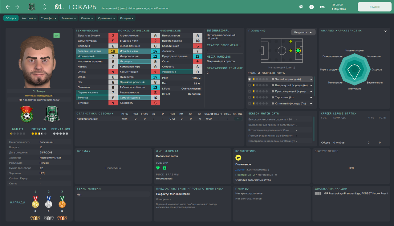 И прям на самом флажке зимы - то, чего мы ждали! Первый помёт новеньких, с иголочки, "телят" в нашем клубе! Кого будем холить-лелеять, а кого с ходу на мясо? Давайте смотреть. Вообще набор, скажем так, вышел неоднозначный, элитных талантов на сей раз и вовсе не завезли, так что просто подписываем несколько крепких ребятишек. Поехали!
