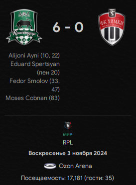 Как-то даже неловко вышло... С ходу как взялись бодать и топтать горячих южных парней, так и не прекращали сие действо до полного прекращения даже не сопротивления, а каких-либо малейших вяков. Тренера гостей даже немного жалко, если честно, ему-то в Грозный возвращаться... У нас же - ассистентский дубль от Лукаса Оласа, 1+1 от Сани Черникова (исправился-таки, дурак неумный) и уже дежурные 2+1 от Джона Кордобы.