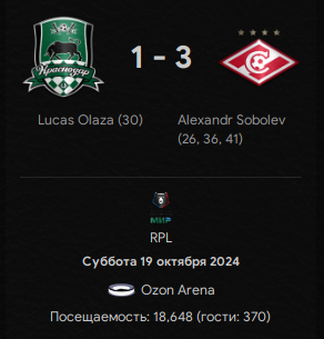 Увы, по делу полностью. Гости набрали какую-то чудовищную форму (1 поражение в 11 матчах чемпионата), а Соболев на кураже после Испании ещё и нам хет-трик положил, но... Знавал я как-то в прошлом сезоне одну московскую команду, которая по осени всех рвала, метала и топтала. Где она сейчас? Ау-ау, не докричаться никак.
