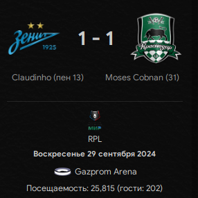 • "Зенит" (Лига Чемпионов УЕФА) - 4 очка, 26 место. Вроде бы в моменте, если бы команда "стоп" прозвучала сейчас, это вылет. Но нюанс в том, что всё на самом деле очень плотно, сей миг у восьми команд по 4 балла, вот только если "Фейеноорд", "Галатасарай", "Копенгаген" и "ПСВ" замыкают зону 1/16 финала, то вот "РБ Зальцбург", наши поленца, "Рейнджерс" и, внезапно, "Милан" уже стоят на выход. В принципе, есть ещё где баллов настрелять, так что надеюсь, что Питер без боя не сдастся.