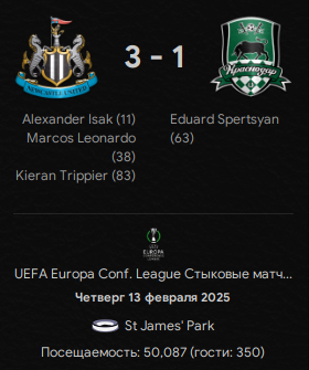 Впрочем, у нас жребий прям вот ни разу не лучше. "Ньюкасл Юнайтед", самый хреновый вариант из всех возможных - наш. Прекрасно. 13 февраля играем в Англии, 20 февраля - дома.
