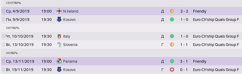 На осенние матчи задача перед сборной и её главным тренером Неизвестным (представляю, как веселились в комментариях в интернет-СМИ над его фамилией :smyle:) стояла одна: набрать необходимые 4 очка для выхода на будущий Евро. Задача, вроде бы, не самая сложная, учитывая, что из 4-х оставшихся матчей - два с аутсайдерами из Косова, а ещё один со Словенией, разгромленной дома 3:0 в первой игре.