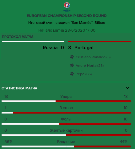По сути, после этого всё уже стало ясно в этой игре. Португальцы делали, что хотели, сделав посмешище из безупречной до этого защиты команды Неизвестного. Андре Орта на 53-й минуте забил просто издевательский гол, спокойно юркнув между защитников прямо в штрафной, а 37-летний ветеран Пепе также спокойно переиграл их в воздухе, ударом головой поставив точку в этом матче на 66-й минуте игре.
