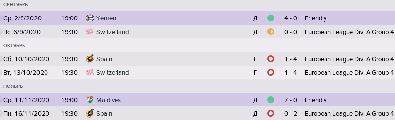 Ноябрьский матч с испанцы у себя дома турнирного значения уже не имел - сборная России не выдержала первый "элитный" экзамен в Лиге Наций и вылетела обратно в Лигу Б. Поэтому Валерий Черчесович вызвал в сборную на матчи с Мальдивами и Испанией. Почему были выбраны такие слабые соперники по товарищеским матчам? Ну, во-первых, матчи эти были назначены ещё летом, после ЧЕ и Неизвестным с полным правом ожидал куда большего от этого турнира, хотя бы, занять второе место, а во-вторых - это хорошая разминка перед более важной и сложной игрой, хорошая возможность восстановить подзабытые старые связи и наиграть новые. Так что, почему бы и нет? :smyle: