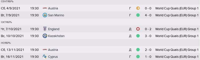 Первая осенняя игра в гостях с Австрией должна была стать, во многом, определяющей. Чтобы сохранить шансы на поездку в Катар перед домашней игрой с Англией в октябре надо было обыгрывать австрийцев в гостях, ну или, хотя бы, не проиграть им. Второе получилось, первое - нет. Das Team до этого без шансов проиграли у себя дома англичанам - 0:3, и для них эта игра была важнейшей. И они сделали, что смогли. Полузащита РБ Зальцбург в лице Конрада Лаймера и особенно Ксавера Шлагера буквально "выжигала" центр поля, заставив Головина с Кузяевым схватить по "жёлтой" карточке, Далер ещё и ушиб колена получил, выбыв на два дня.