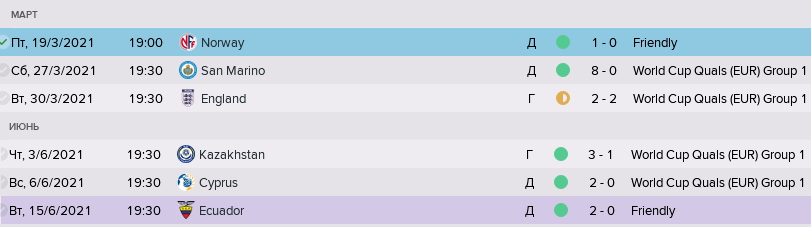 Молодёжная сборная под руководством Евгения Бушманова. Правда, куда именно они отобрались, осталось загадкой - вместо МЧЕ-2019 ФМ вновь отправил их в квалификацию следующего МЧЕ, а турнирные таблицы этого словно "испарились" из игры :smyle: