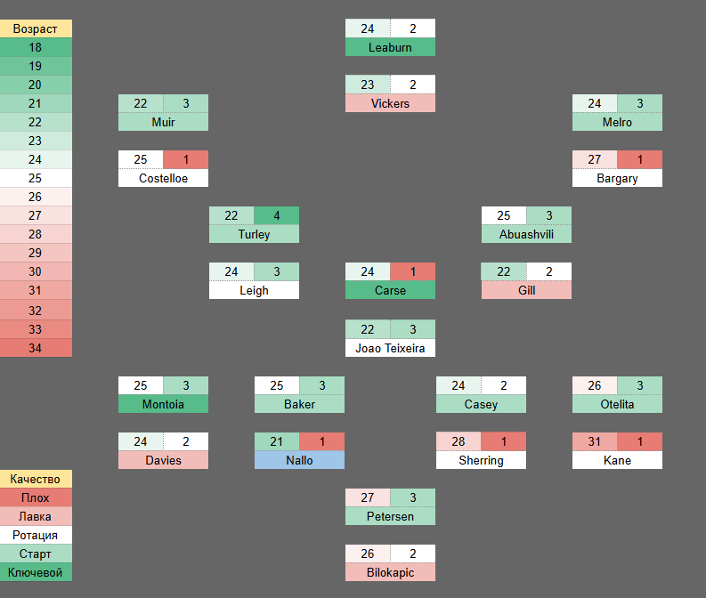 Подписать, помимо упомянутых широких RB и LW, предстоит сразу двух голкиперов, а также опорника и центрального защитника в ротацию (возможен вариант с одним человеком, способным сыграть на обоих позициях).