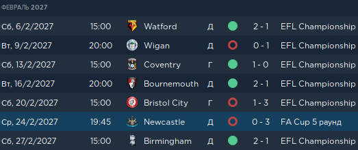 Чемпионшип, 30 тур. Выезд к Дерби Каунти 0:1 (Досадное поражение, учитывая что Либёрн попал в перекладину с пары метров, когда вратарь соперника пролетел мимо мяча, и ворота были пустыми)