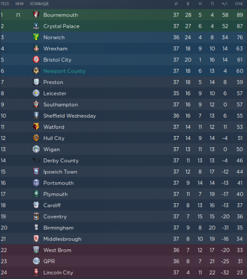 Ньюпорт вернулся в зону стыков впервые с начала сентября. Но по потерянным очкам Изгнанники лишь на 8 месте, уступая Лестеру и Саутгемптону, у которых есть матч в запасе.