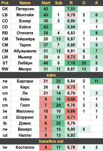Либёрн отстал на 3 мяча от Саржента, который был продан в АЗ Алкмаар на флажке январского ТО, что безусловно упрощает борьбу за золотую бутсу Чемпионшипа для Майлза.