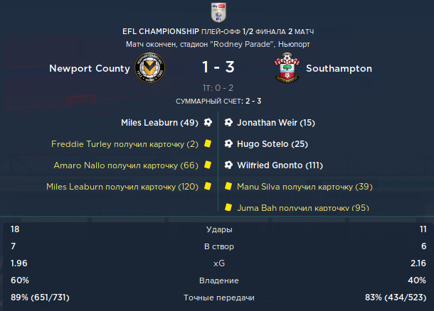 Чемпионшип, 1/2 плей-офф, ответный матч. Дома с Саутгемптоном 1:3: