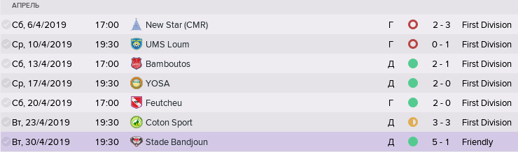 Призовые за топ-10 здесь, в целом, неплохие, но уж очень выделяются призовые чемпиону - почти 2,5 миллиона и всем остальным - от 11000 для 10-го места до 153000 для 2-го места. Это просто нереальный отрыв по деньгам. С другой стороны, есть за что бороться, есть мотивация. Понятно,  что местным топ-клубам проще - у них есть все ресурсы для достижения этого успеха, а вот клубам попроще - кому как повезёт. Взять, хотя бы, прошлый сезон: разрыв между 1 и 10 местами составил, в итоге, 21 очко - много, но, в целом, нормально. А между 10 и 18 - 56 очков, т.е. почти в 3 (!) раза больше. При этом, ставший последним Stade Renard de Melong (ИРЛ, между прочим, победитель Кубка и Суперкубка страны 2019 года) с треском проиграл все 34 игры с разницей голов 4-96, не набрав ни одного очка. Я впервые такое вижу в ФМ, если честно.